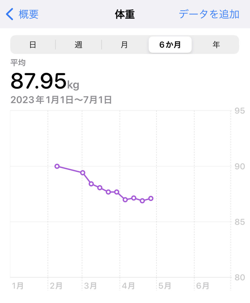 上記のデータは、6ヶ月間のデータが見れるのですが見事にダイエットが成功しています。